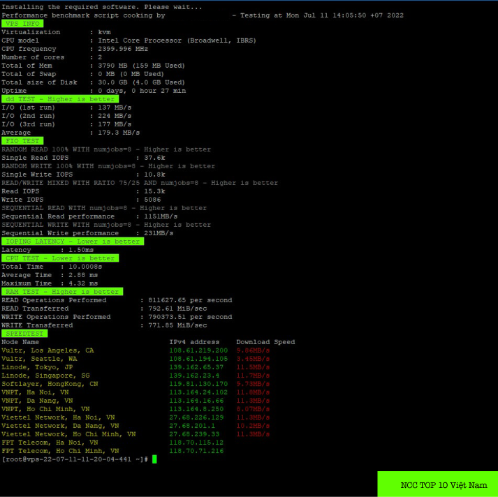 Máy chủ ảo đám mây CloudyTek tương đương với các server của các nhà cung cấp top đầu ở VN hiện nay. Đó là kết quả sau bài test đánh giá khách quan về hiệu năng cloud server của CloudyTek.