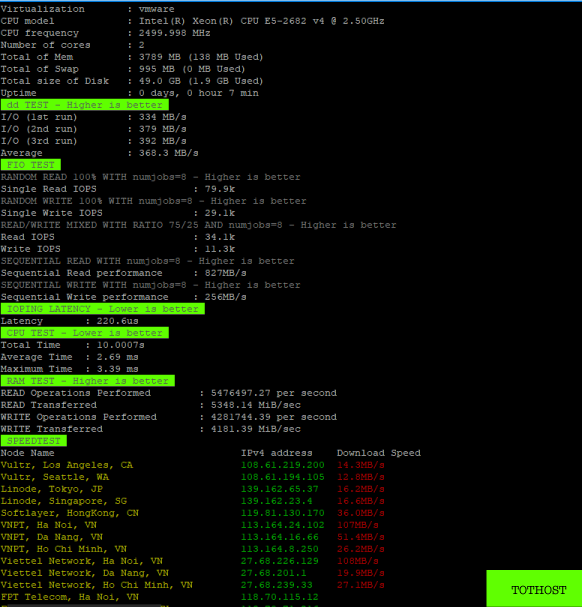 Với việc đầu tư nhiều vào tài nguyên hạ tầng, server của tothost có hiệu năng tương đương so với các server của các nhà cung cấp top đầu ở VN hiện nay. Thậm chí còn vượt trội hơn một số các chỉ số của server. Vậy nên tothost sẽ là một lựa chọn tối ưu cho các bạn.